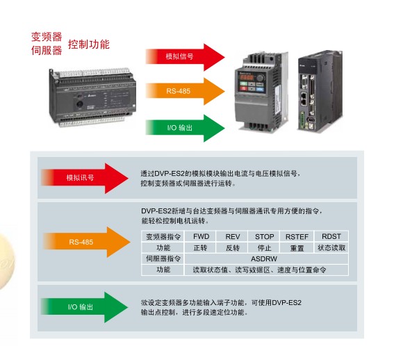 | DVP32ES200R | 32点主机,16DI/16DO(继电器/250Vac/24Vdc/2A), 2路100K输入,2路20K输入, AC电源 |