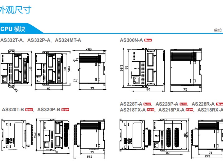 AS200 AS218TX-A 欧式端子8DI,6DO(NPN),2AI,2AO,4组200K AB相输入, 3轴200K AB相输出, 64K步容量, 内建以太网口, RS485x2, 集成Canopen