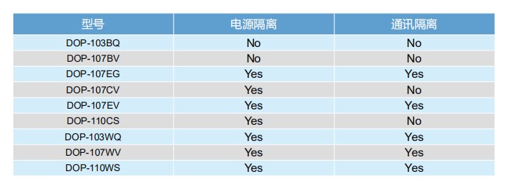 | HMI | DOP-107EG | 7"/分辨率800×600/U盘/打印机/鼠标/集成以太网/窄边框,高亮度450cd/㎡,COM1:RS-232, COM2:RS-232/485,COM3: RS-422/485 |