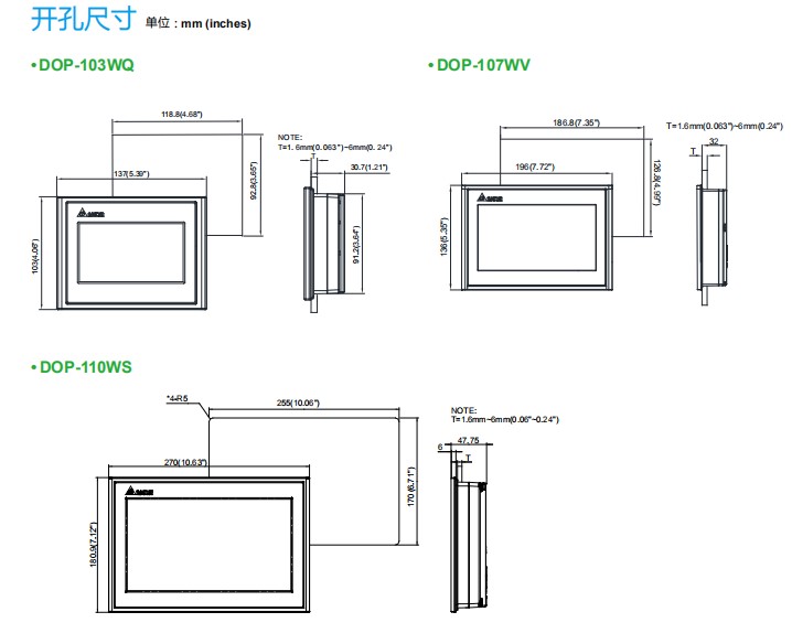 | HMI | DOP-B03S210 | 4.3"宽屏/分辨率480*272, COM1:RS-232(支持流量控制)/RS-422/RS-485, 开孔尺寸:118.8 x 92.8 |