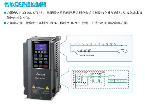 | VFD-CP | VFD220CP23A-21 | 220V/3P,22kW,内置10k PLC,刹车内建,DC电抗选购, UL,CE,IP20,NEMA1 |