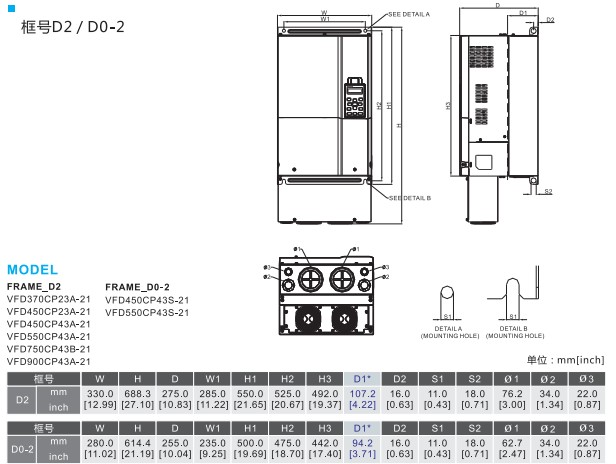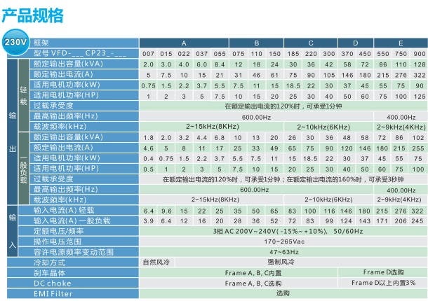 | VFD-CP | VFD450CP23A-00 | 220V/3P,45kW,内置10k PLC,刹车内建,DC电抗选购, UL,CE,IP00,UL OPEN TYPE |